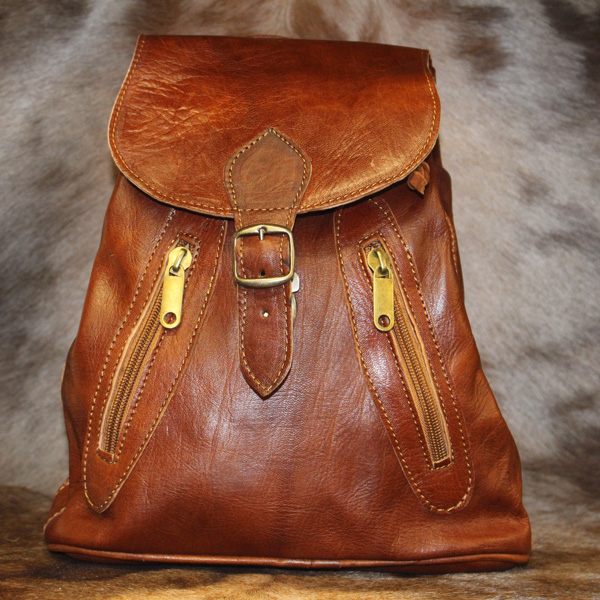 Sac à dos en cuir naturel marron